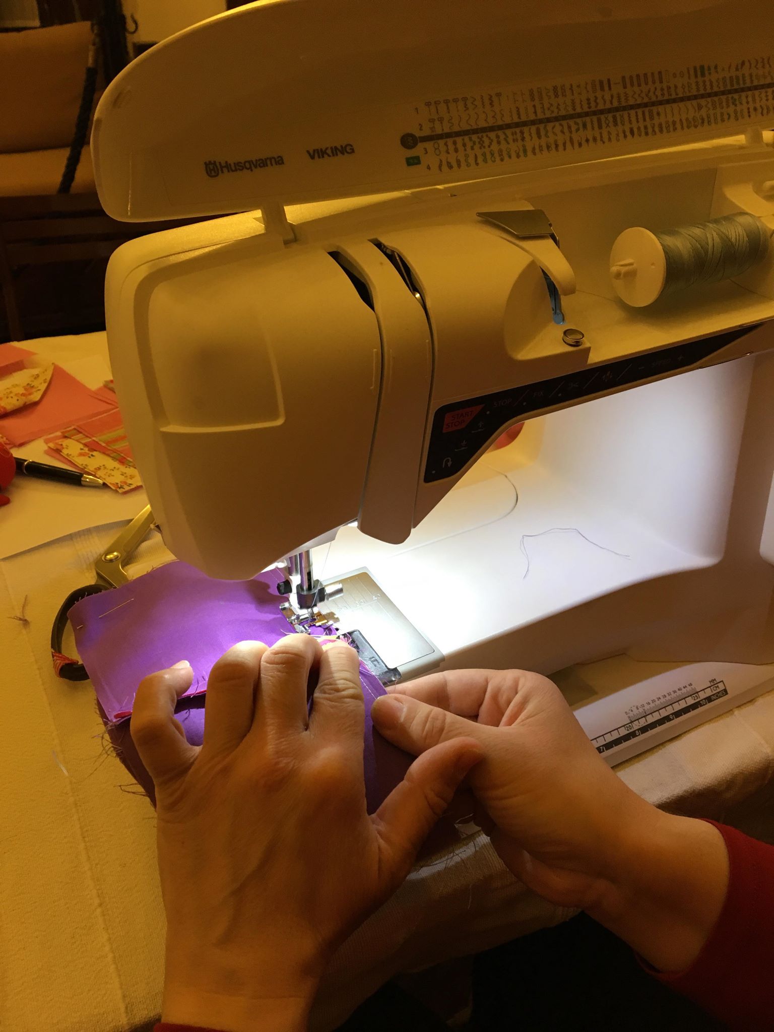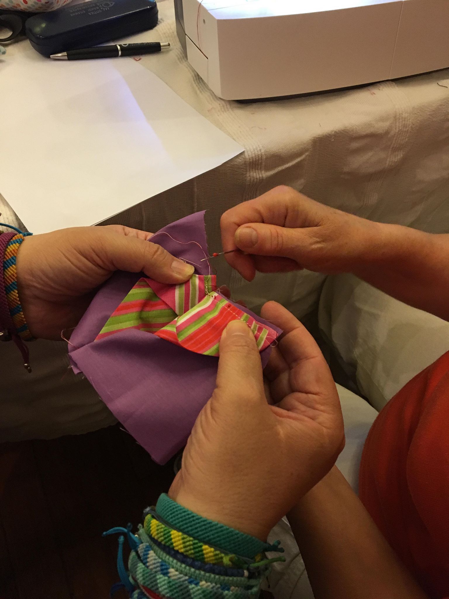Την επόμενη μέρα κάναμε το πρώτο μας εργαστήρι. Αντρες και γυναίκες, όπως βλέπετε από τα χέρια, έραψαν μαζί μας στις μηχανές που ήταν χορηγία Husqvarna Viking – Καραμήτσιος ΑΕ.